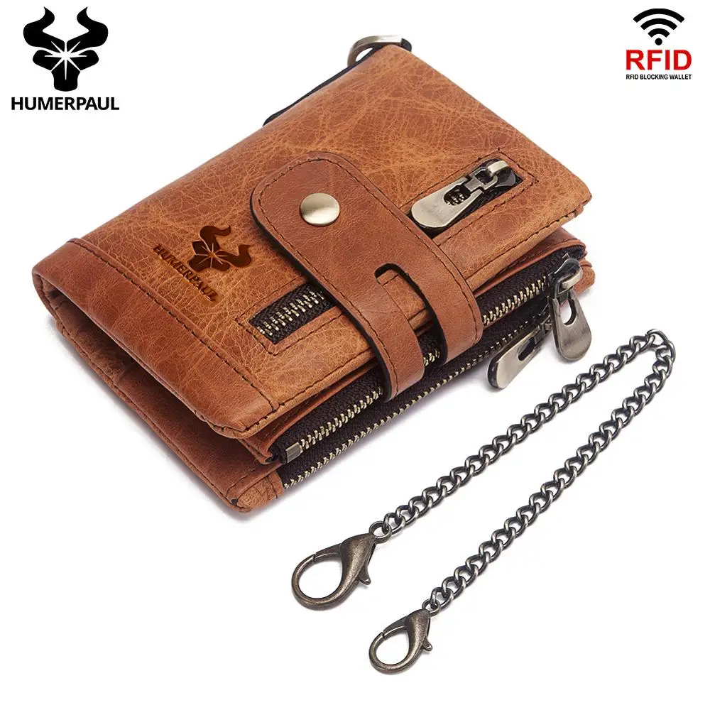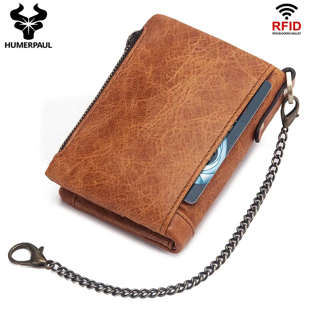 Special Offer Мужской кошелек из коровьей кожи высокого качества с защитой от кражи, с цепочкой, мужской кошелек, мягкая сумка для денег, повседневный дер... Discount 22% Today!