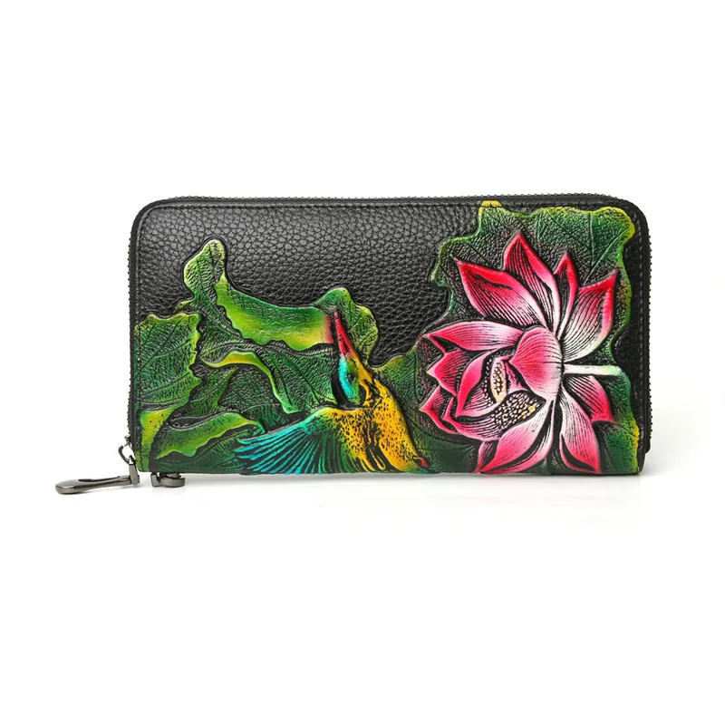 Special Offer Новинка 2019, Женский кошелек из натуральной кожи, длинные женские кошельки и кошельки, роскошный брендовый клатч, кошелек с цветочным рисунк... Discount 56% Today!