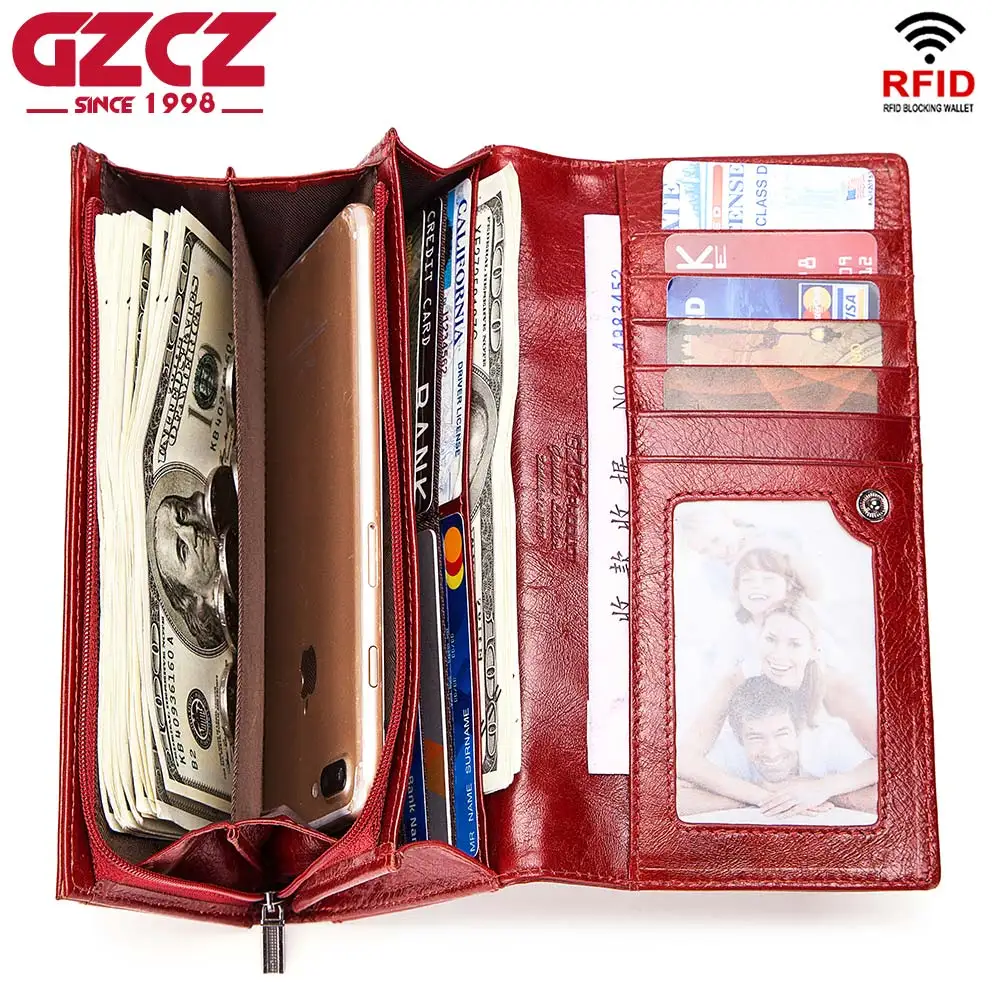 Special Offer GZCZ Женские кошельки из натуральной кожи Длинный кошелек фирменный Дизайн Сумочка для сотового телефона держатель для карт женские клатчи с... Discount 40% Today!
